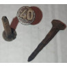 Clou en fer forgé à tête ronde identifiant l'écartement des rails en fonction de l'entaillage.