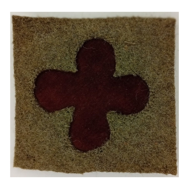 Trèfle rouge artillerie. Modèle précoce trèfle en velours en négatif de l'insigne.
